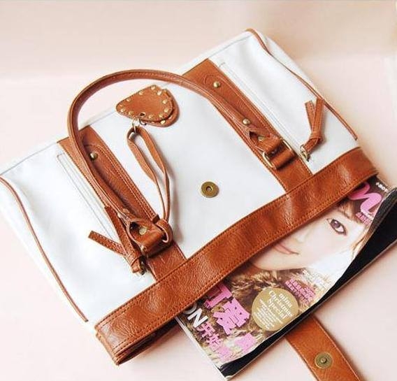 Hermosa cartera de color blanca con detalles en suela, gran capacidad. Cuenta con tres divisiones en su interior, forrada, cerramientos imantados.